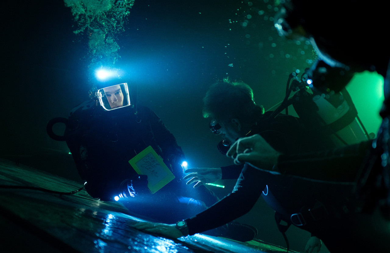 합류해 잠수함 잔해로 잠수합니다.