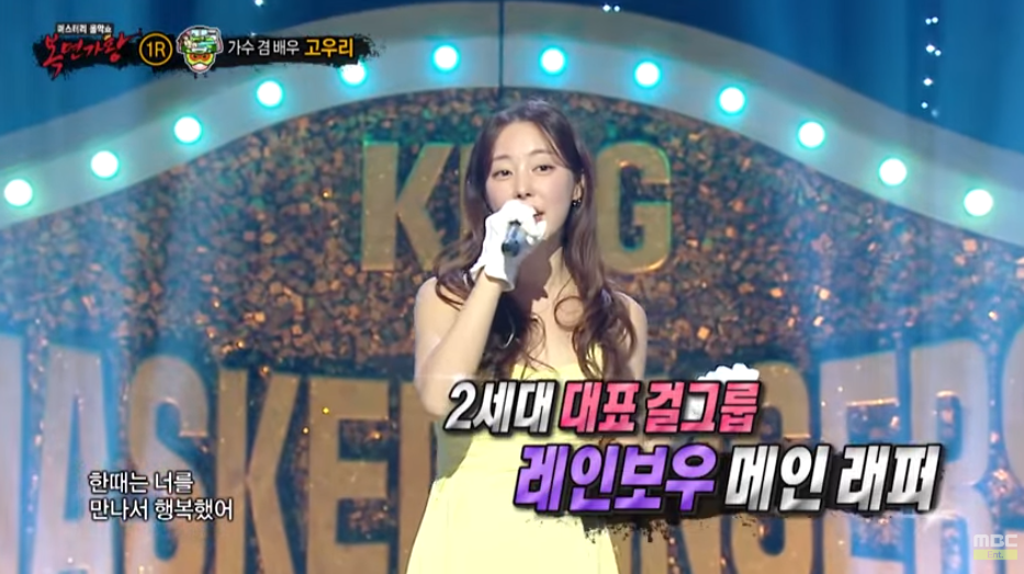 경연에서 패배한 '여름바람'은 더 클래식의 '여우야'를 부르며 가면을 벗었는데요. 그 정체는 바로 레인보우18로 다시 돌아온 가수 겸 배우 고우리였어요.