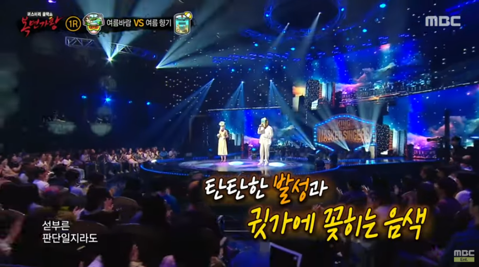 '여름 향기'는 묵직한 중저음으로 호소력 짙은 무대를 선보인 반면, '여름바람'은 트렌디한 음색으로 차분한 가창력을 보여줬어요. 유주는 이날 무대를 평가하며 "'여름 향기' 님은 경연스러운 보컬, '여름바람' 님은 공연스러운 보컬"이라고 표현했어요.