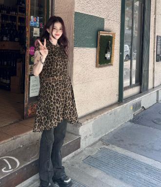 그녀만의 독특한 패션을 완성하고 있어요.